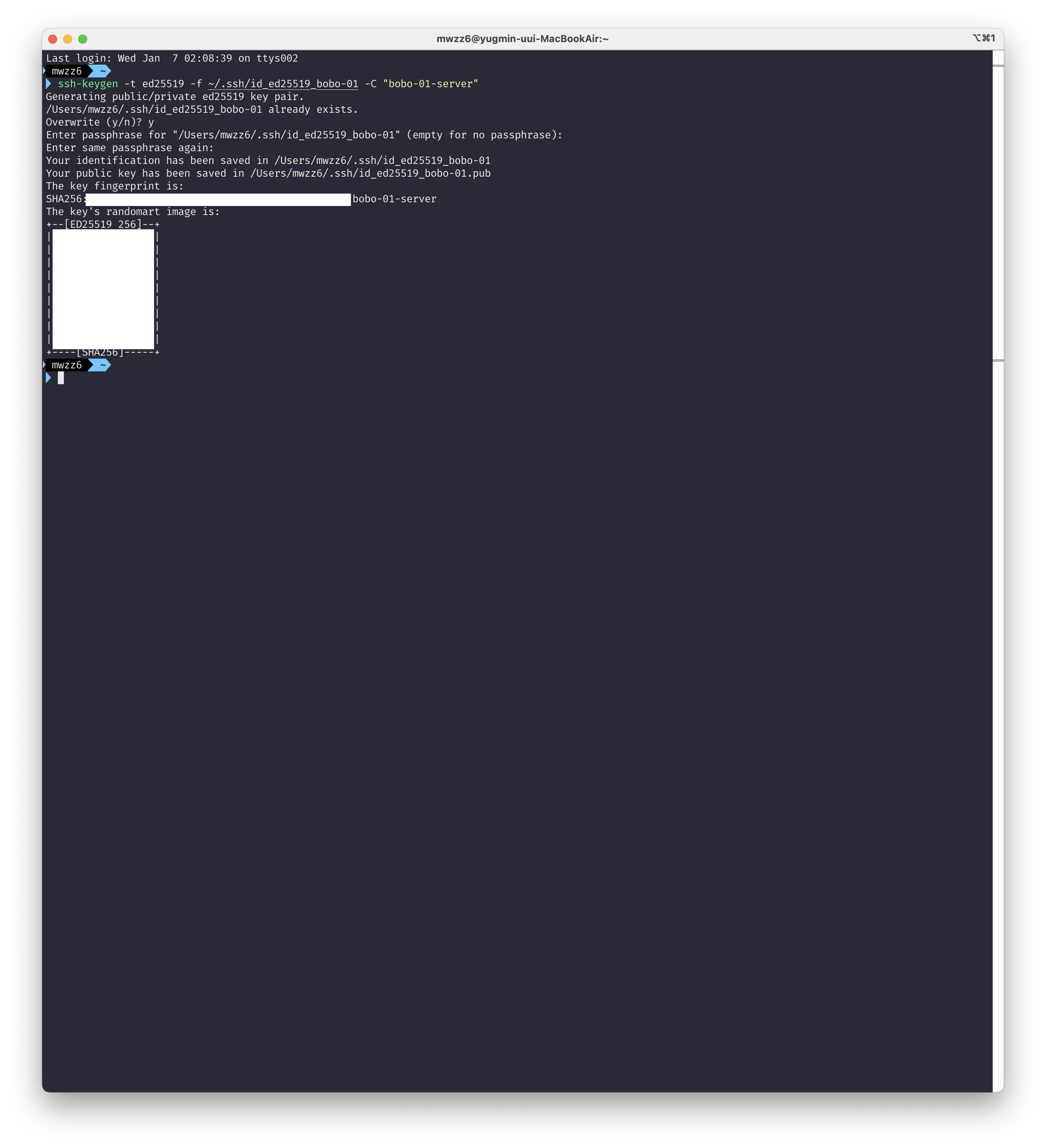 ssh-keygen -t ed25519 -f ~/.ssh/id_ed25519_bobo-01 -C "bobo-01-server"