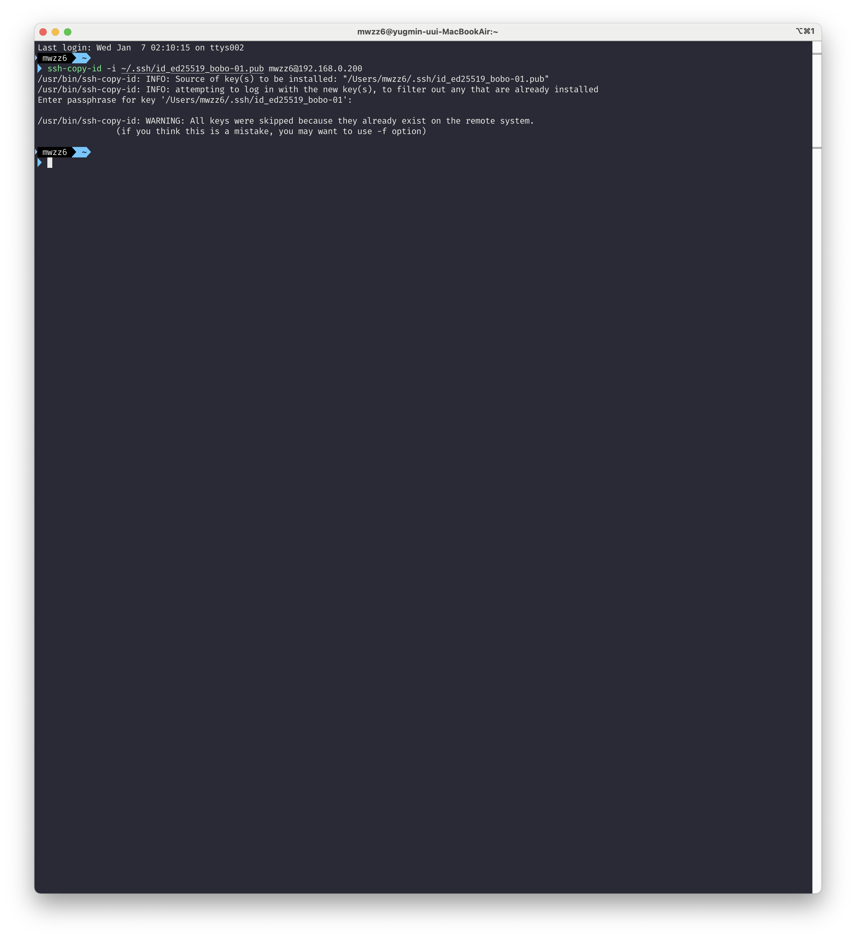ssh-copy-id -i ~/.ssh/id_ed25519_bobo-01.pub mwzz6@192.168.0.200