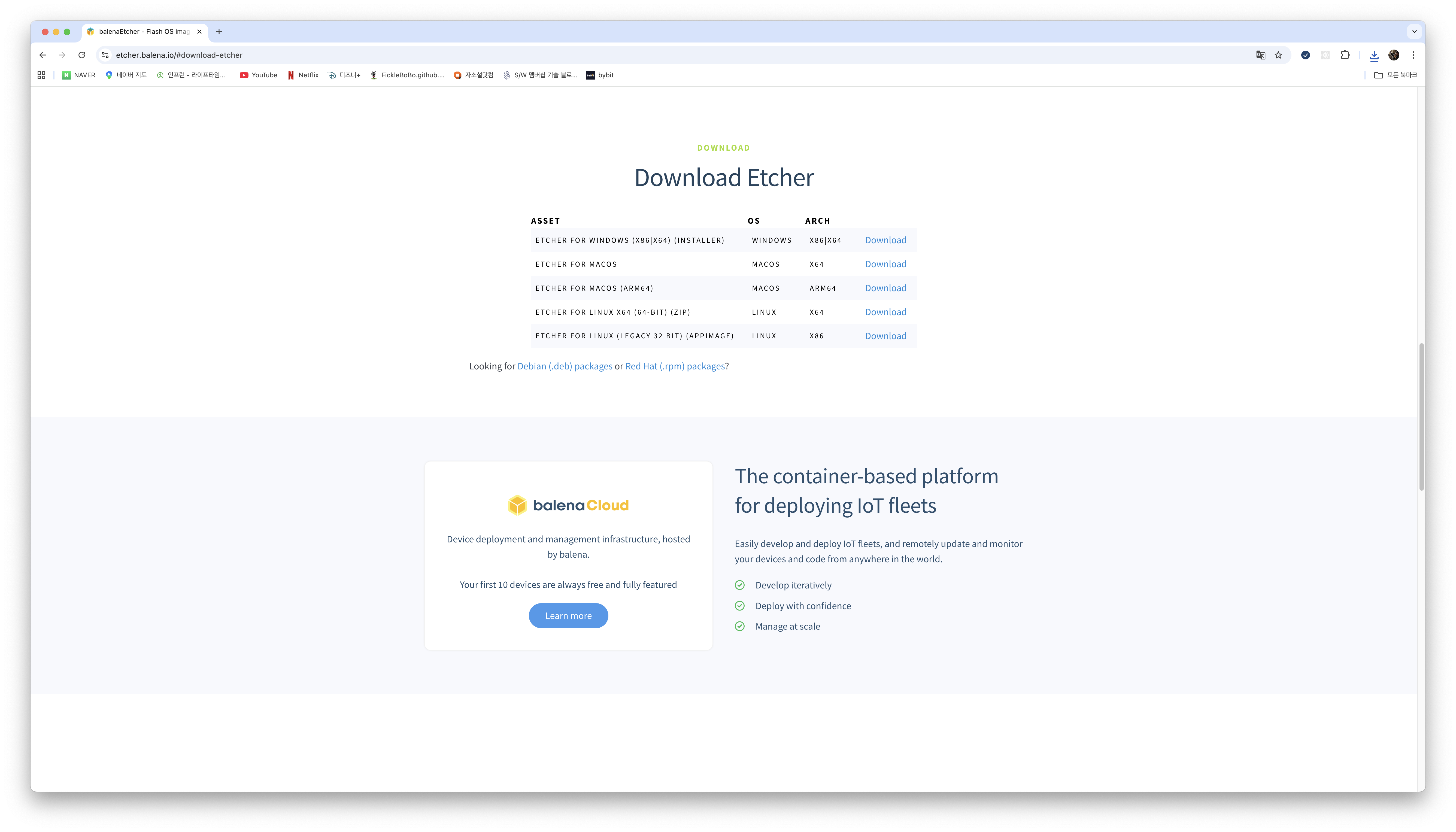 balenaEtcher에서 부팅 USB를 만드려는 OS와 CPU 아키텍처에 맞는 파일을 받아주면 된다. M3 맥북 에어로 부팅 USB를 만드려고 해서 MACOS, ARM64를 선택해줬다.