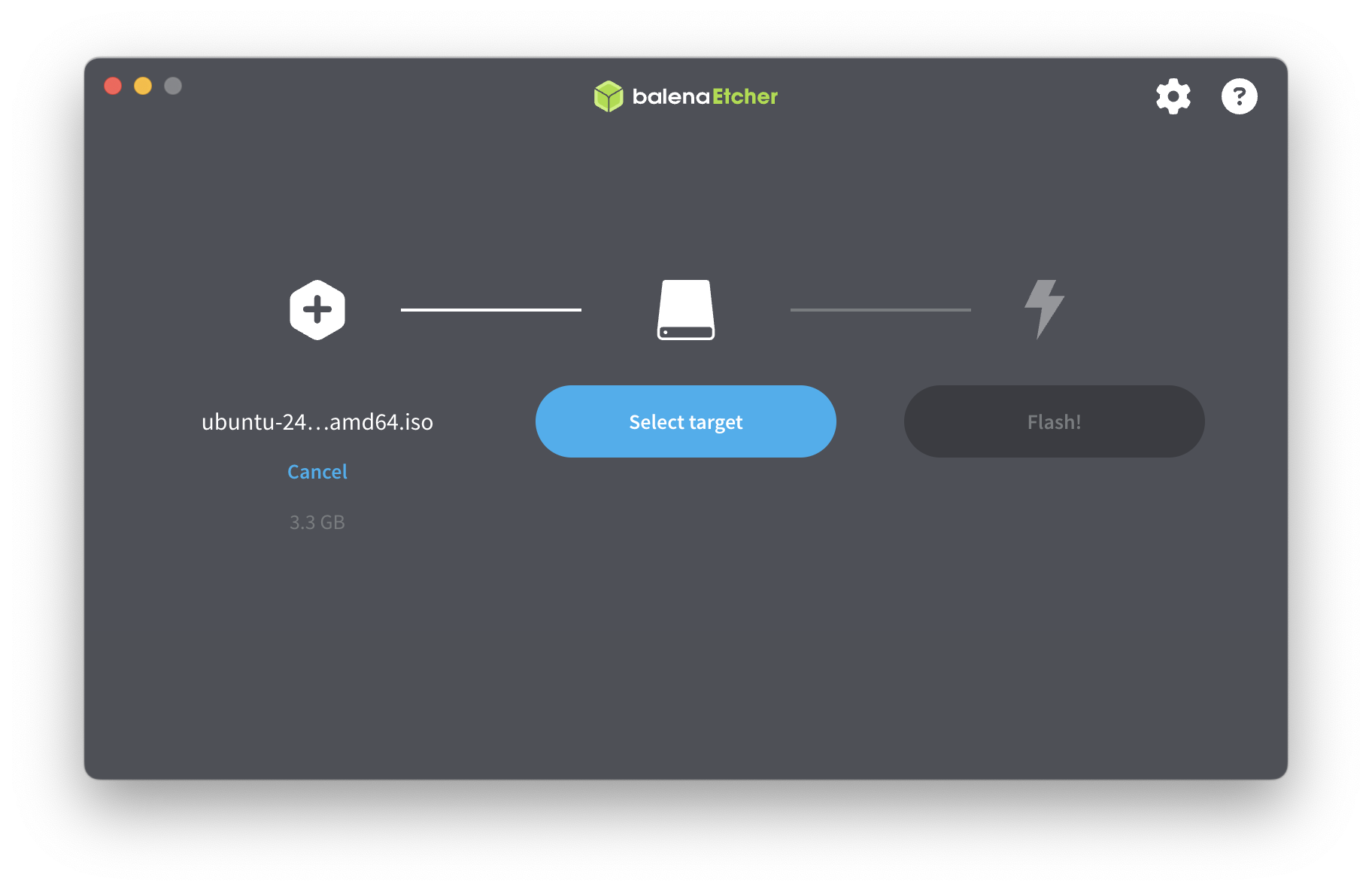balenaEtcher를 실행한 후 Flash from file에서 Flash할 파일로 우분투 ISO 파일을 선택하고,