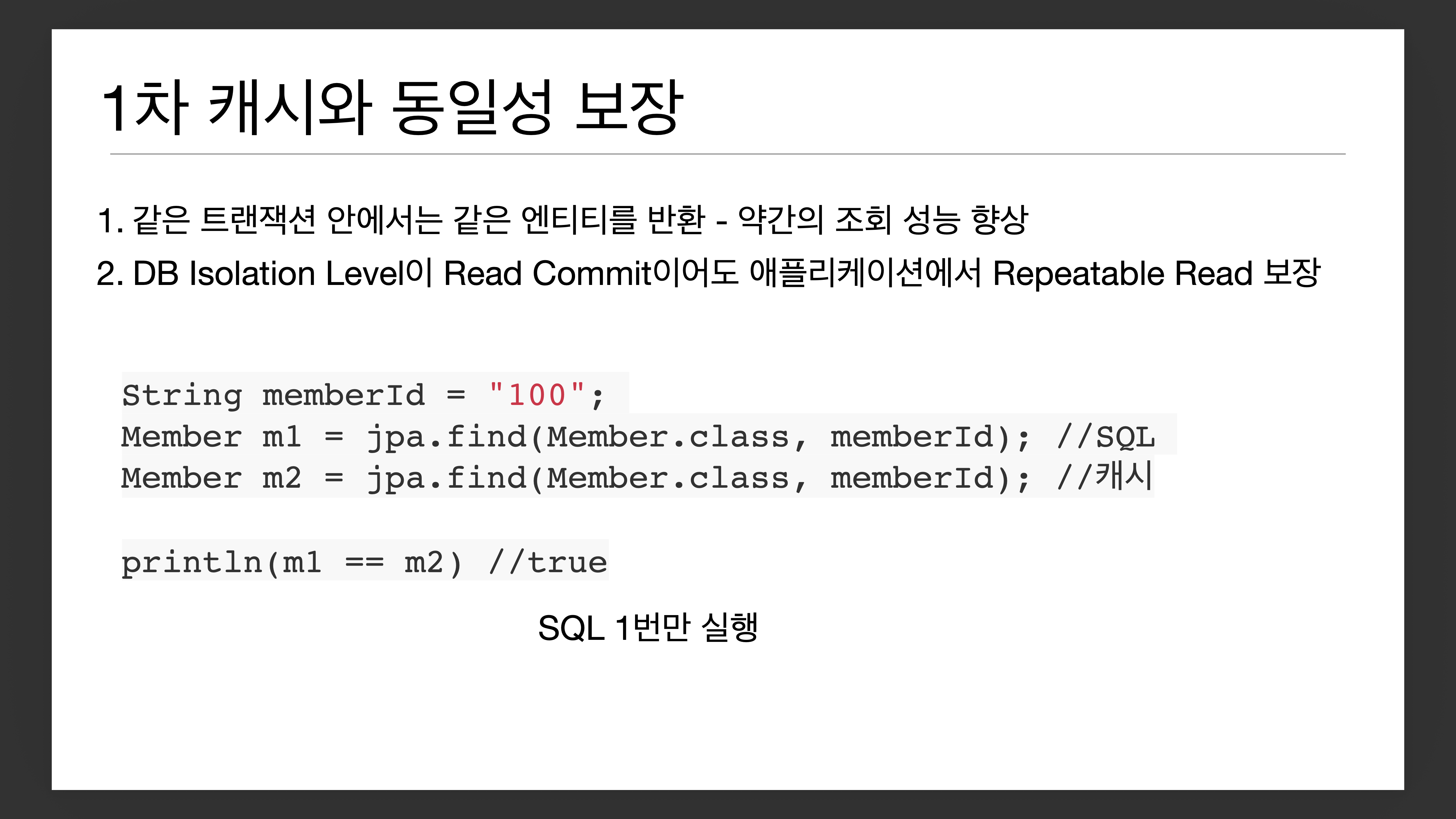 동일한 트랜잭션에서 조회한 엔티티는 같음이 보장된다.
