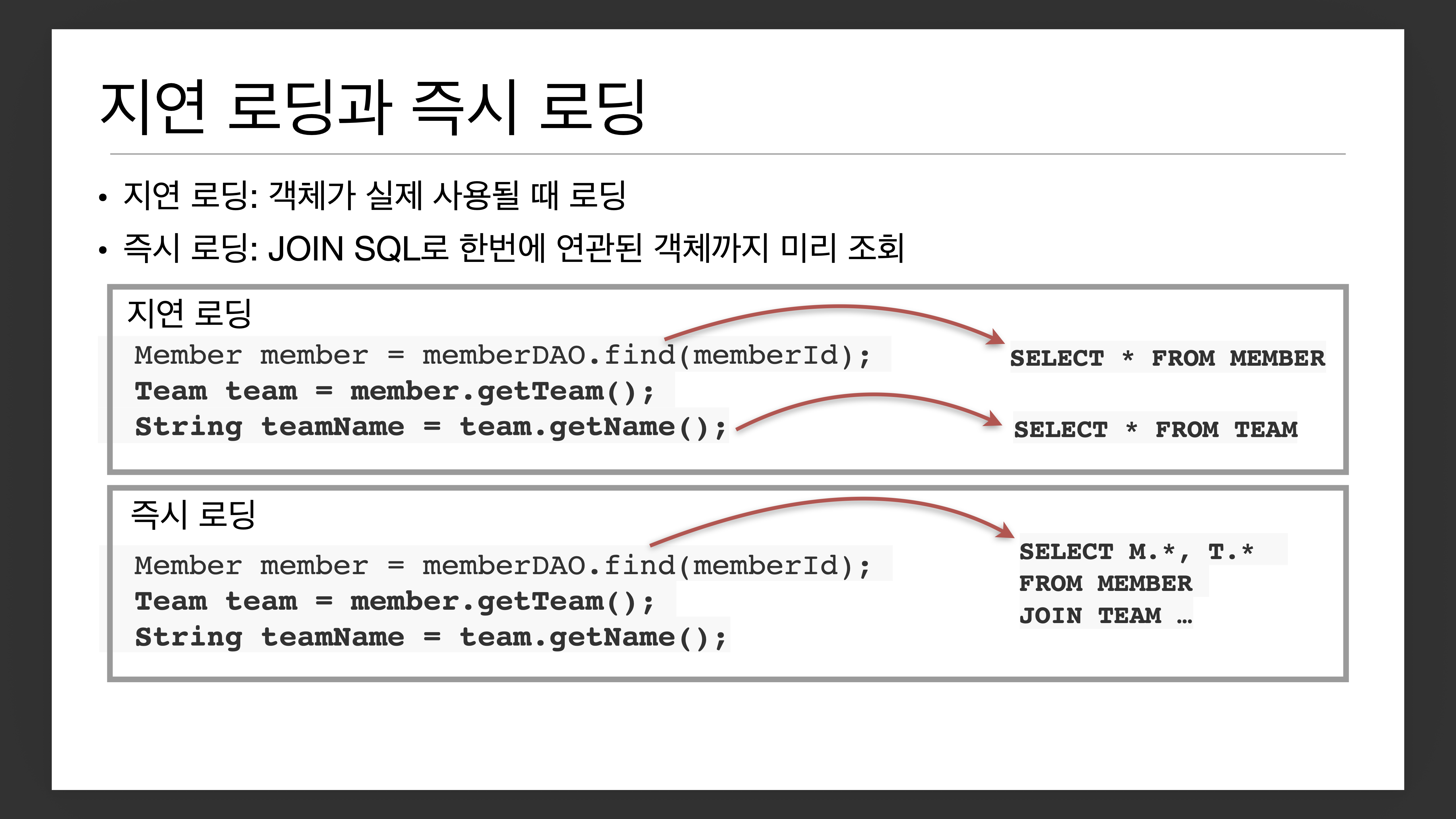객체가 실제 사용될 때 로딩하거나 연관된 객체까지 미리 조회하는 로딩 옵션을 제공한다.